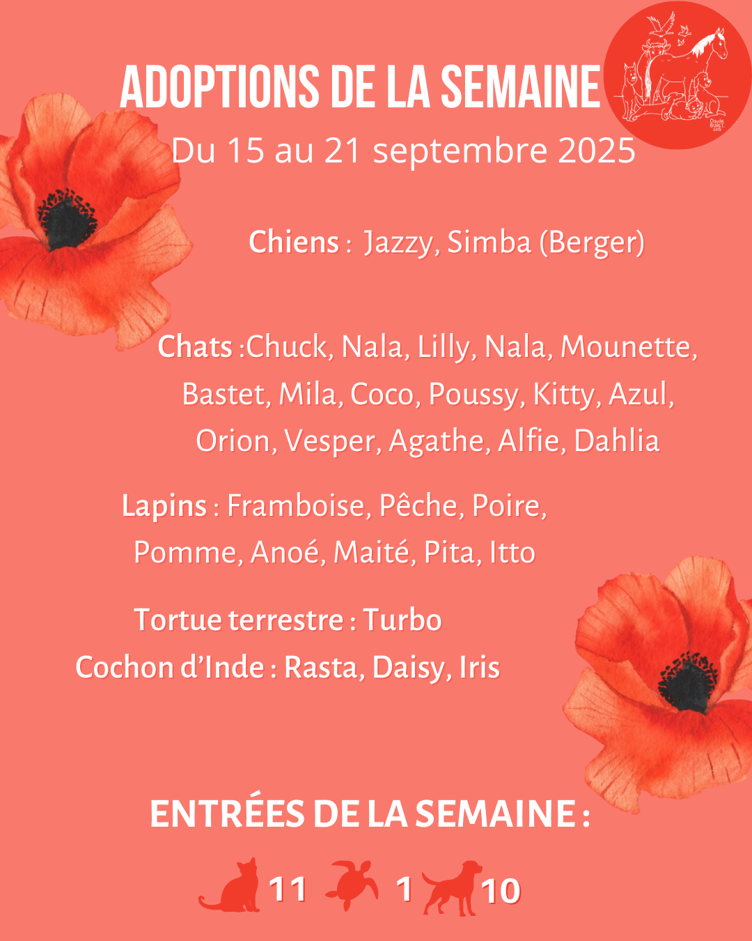 Adoptions de la semaine du 15 au 21 septembre 2025