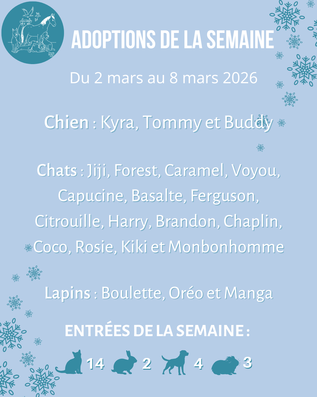 Adoptions de la semaine du 2 au 8 mars 2026
