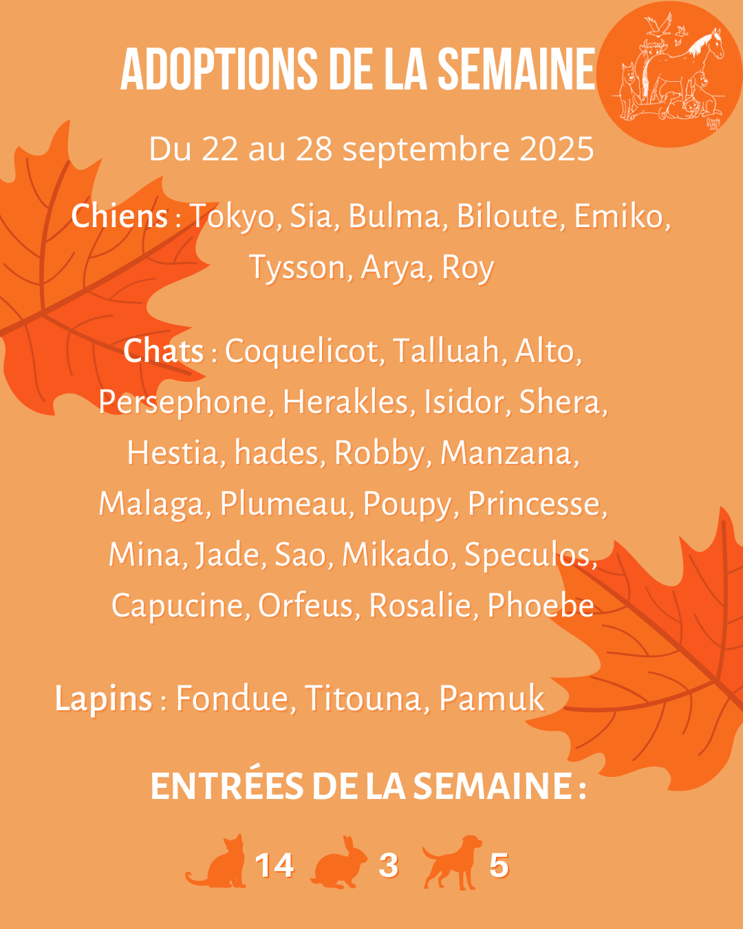 Adoptions de la semaine du 22 au 28 septembre 2025