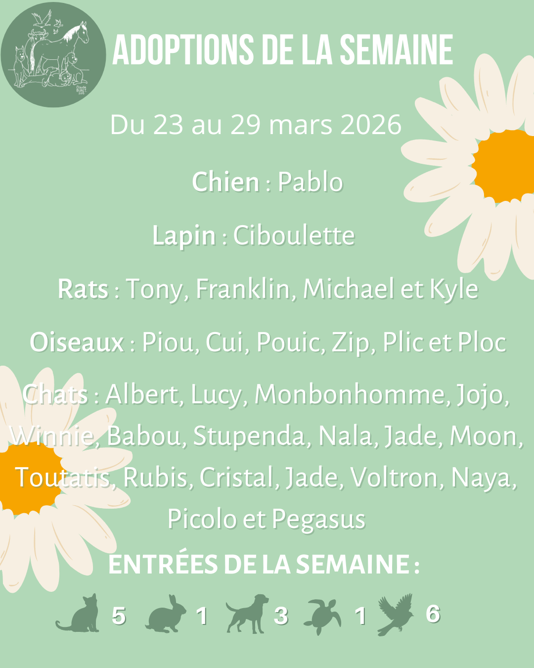 Adoptions de la semaine du 23 au 29 mars 2026