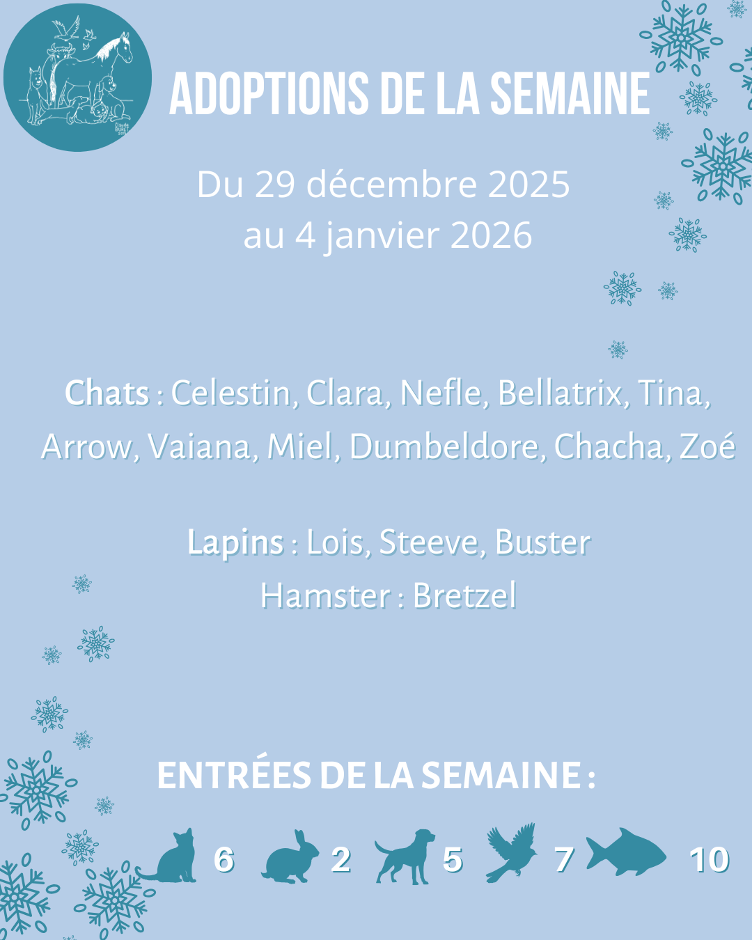 Adoptions de la semaine du 29 décembre 2025 au 4 janvier 2026