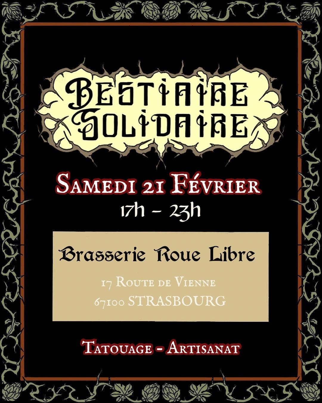 La SPA de Strasbourg vous donne rendez-vous le samedi 21 février à partir de 17h, à Brasserie Roue Libre ![]()