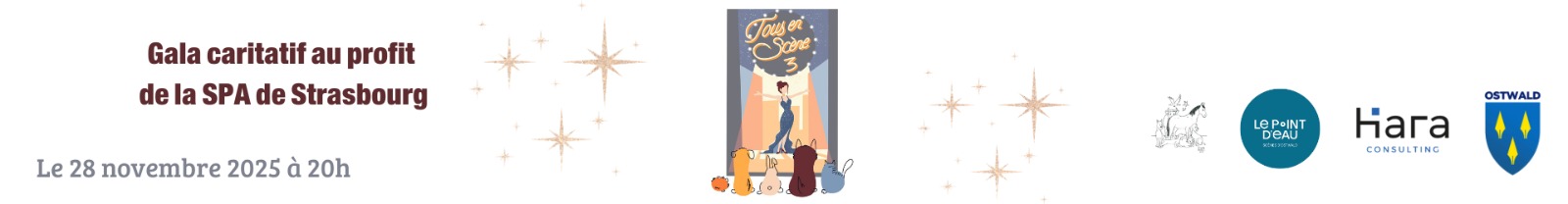 La SPA de Strasbourg est fière de vous présenter son 3ème Gala "Tous en Scène 3" au profit des animaux du refuge.