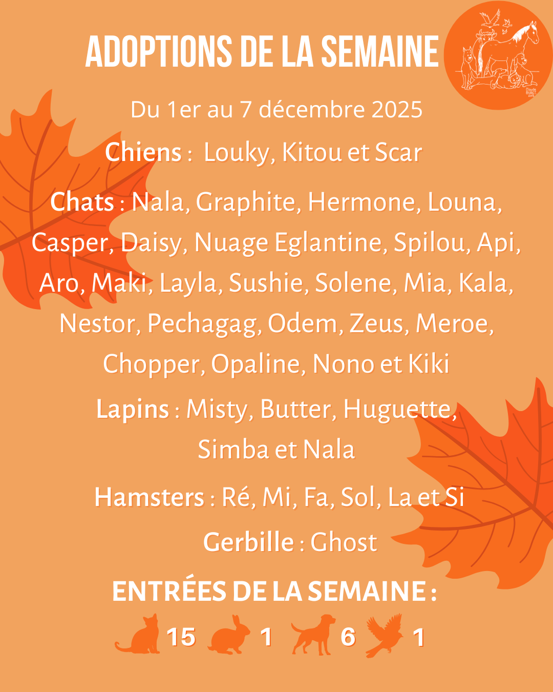 Adoptions de la semaine du 1er au 7 décembre 2025