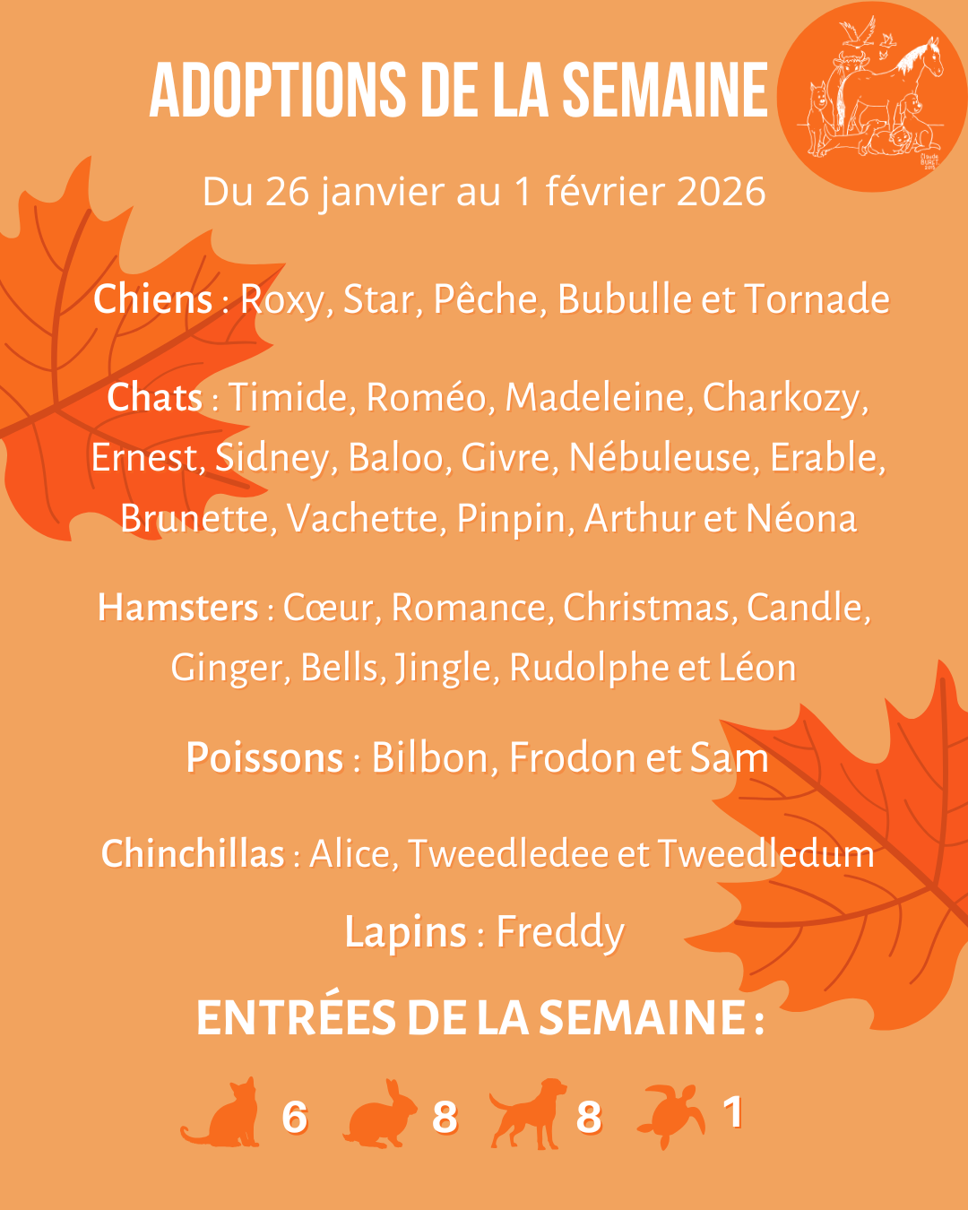 Adoptions de la semaine du 26 janvier au 1er février 2026