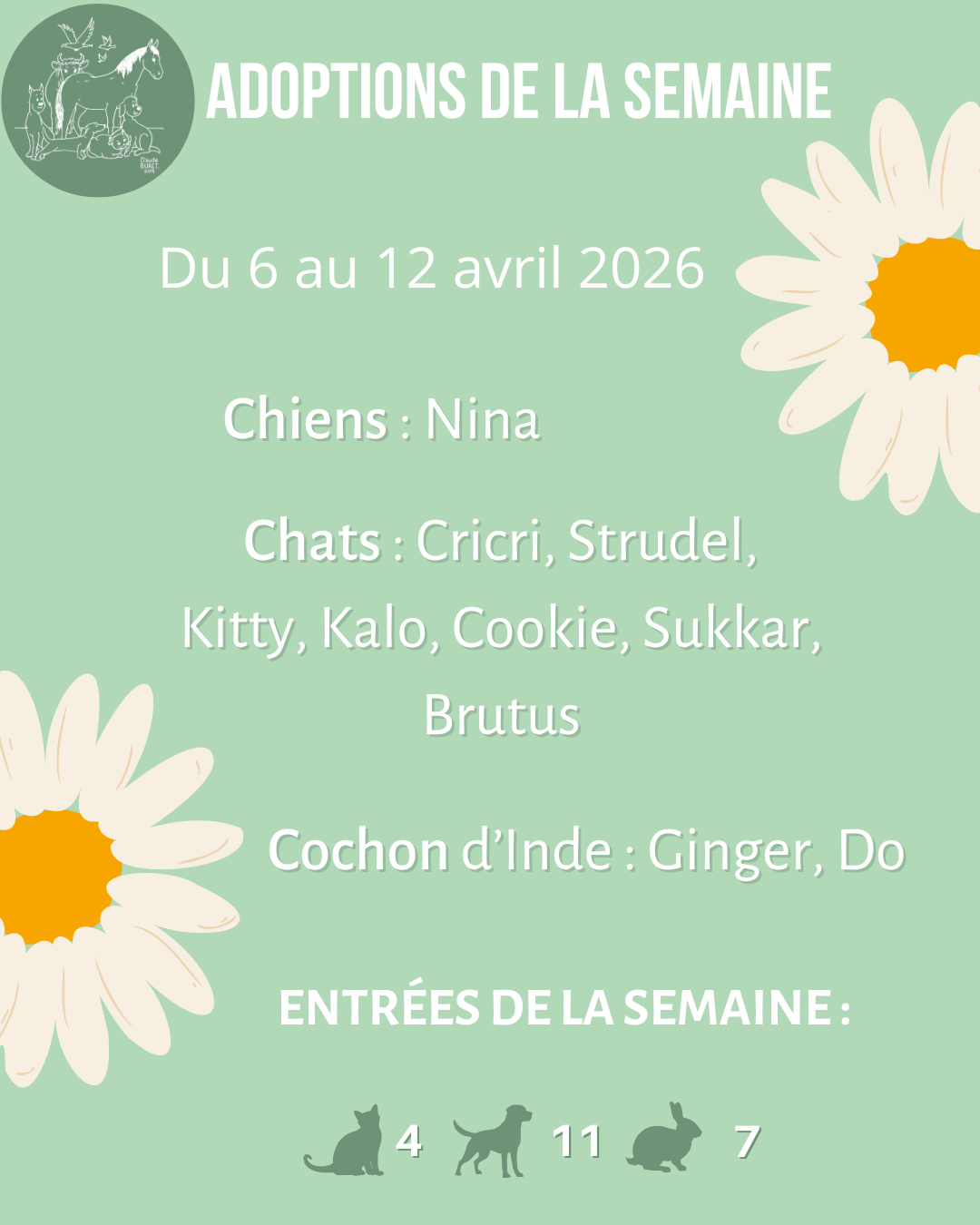 Adoptions de la semaine du 6 au 12 avril 2026