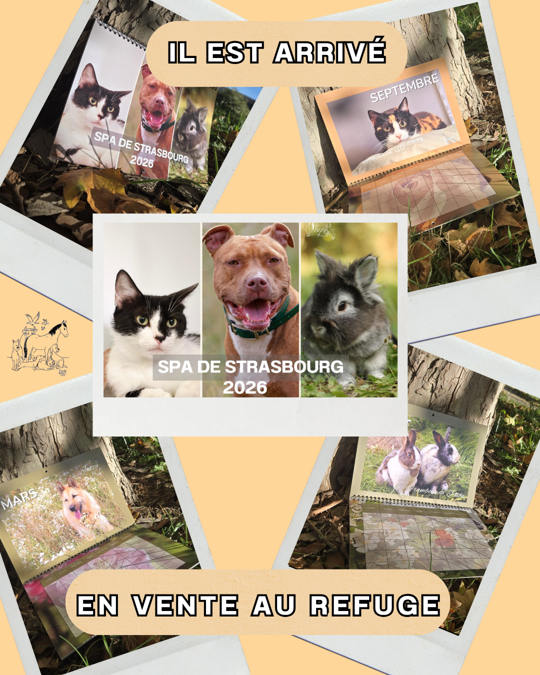 Découvrez le Calendrier 2026 de la SPA de Strasbourg, illustré par les photos de nos pensionnaires et de leurs magnifiques regards pleins d’espoir 🐶🐱🐰