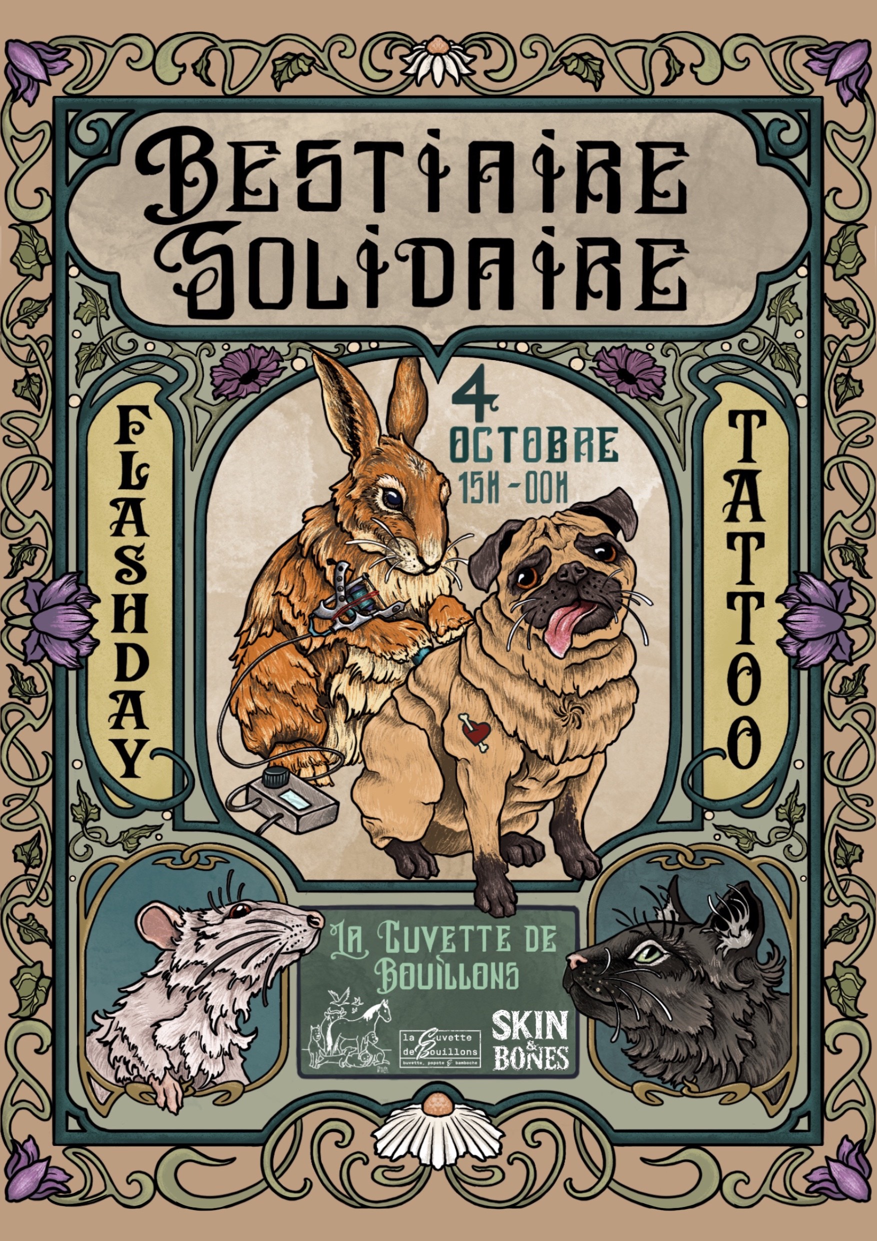 Nous vous invitons également à notre journée Flashday Tattoo pour un tatouage animal, acheter un objet fait main ou parler avec nos bénévoles sur place. A partir de 15h jusqu'à 21 h à "La cuvette de Bouillon".