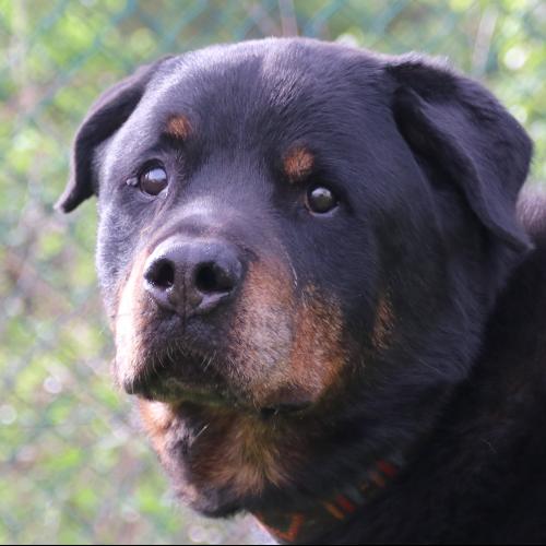 Né en 2013, Sparte, Rottweiller mâle est de retour au refuge depuis le 6 avril 2024.