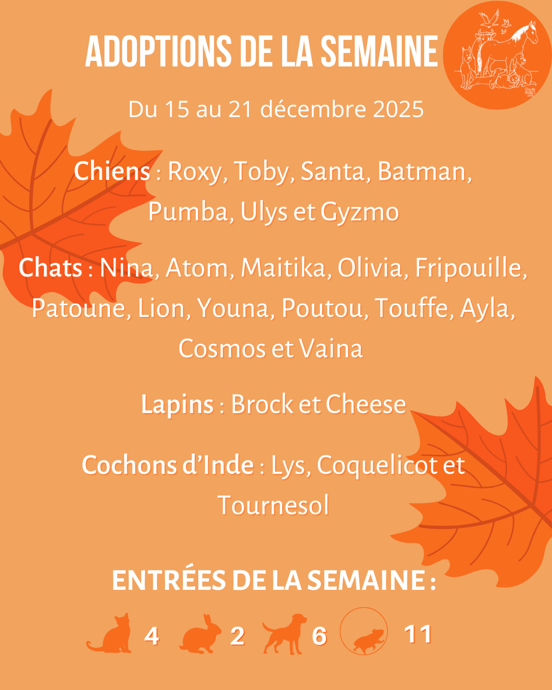 Adoptions de la semaine du 15 au 21 décembre 2025