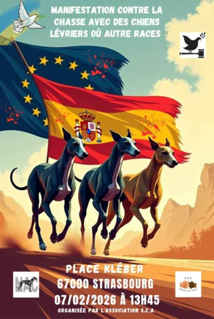 L’association Solidarité Cause Animal organise une manifestation pour défendre les Galgos et les Podencos en Espagne, victimes de maltraitances extrêmes et systématiques.